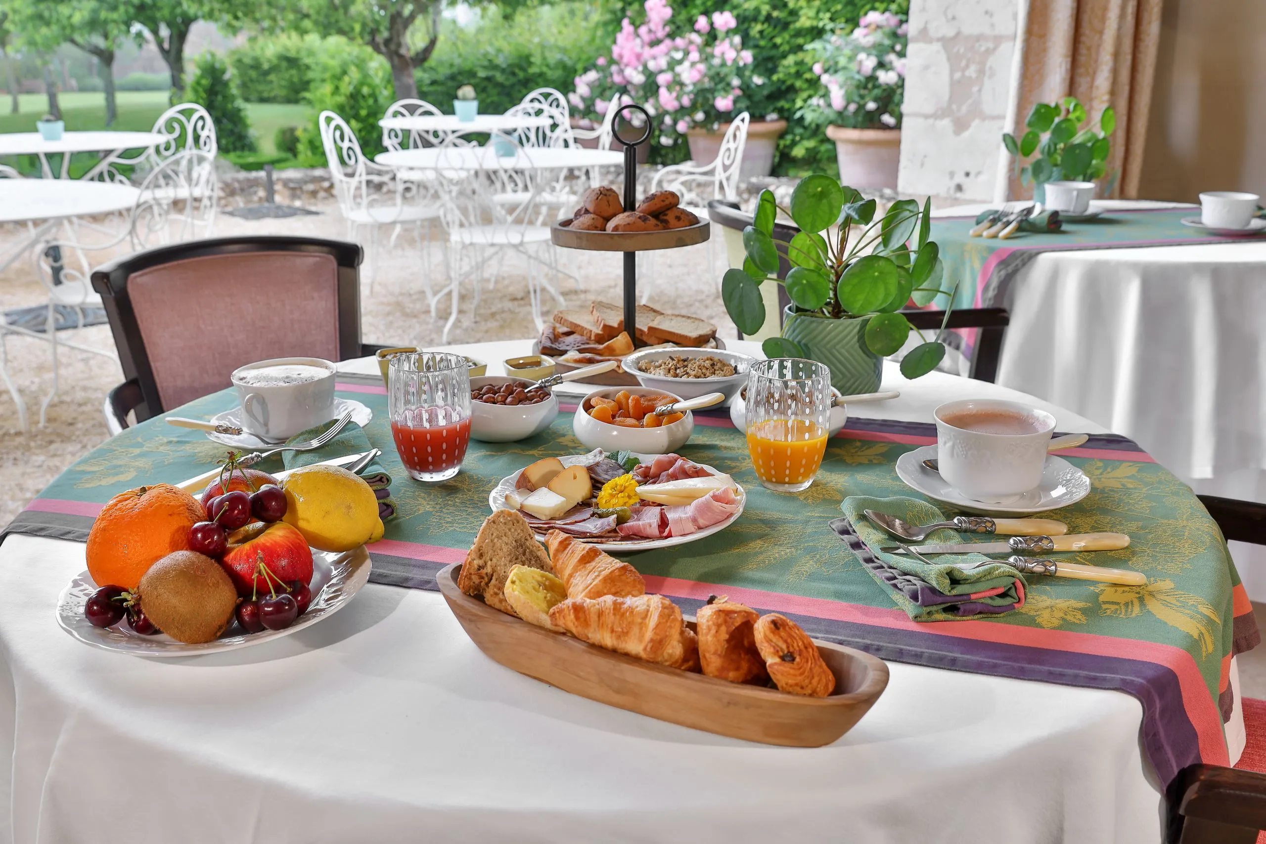 Chaque matin, un petit déjeuner gourmand vous attend, sur des buffets dans la salle à manger baignée de lumière ou sur la terrasse dès les beaux jours …ou dans votre chambre si vous le souhaitez !